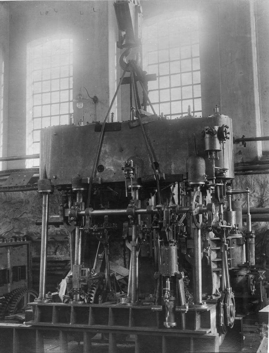 Titel: Ångmaskin tillverkad vid Bergsunds Mekaniska Verkstad i Stockholm.