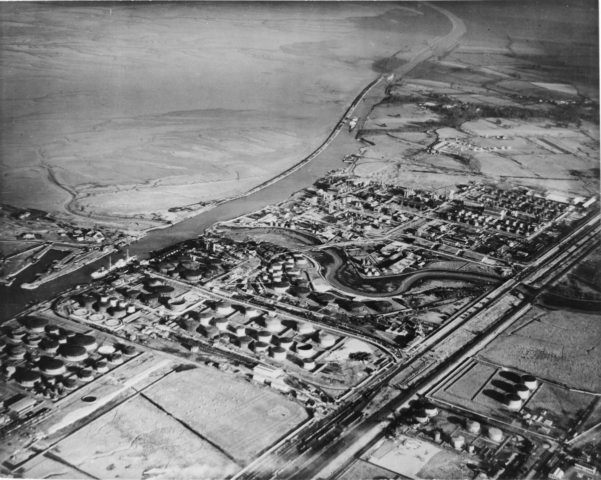 Flygfotografi över Shellraffinaderiet vid Stanlow 14 juli 1949.