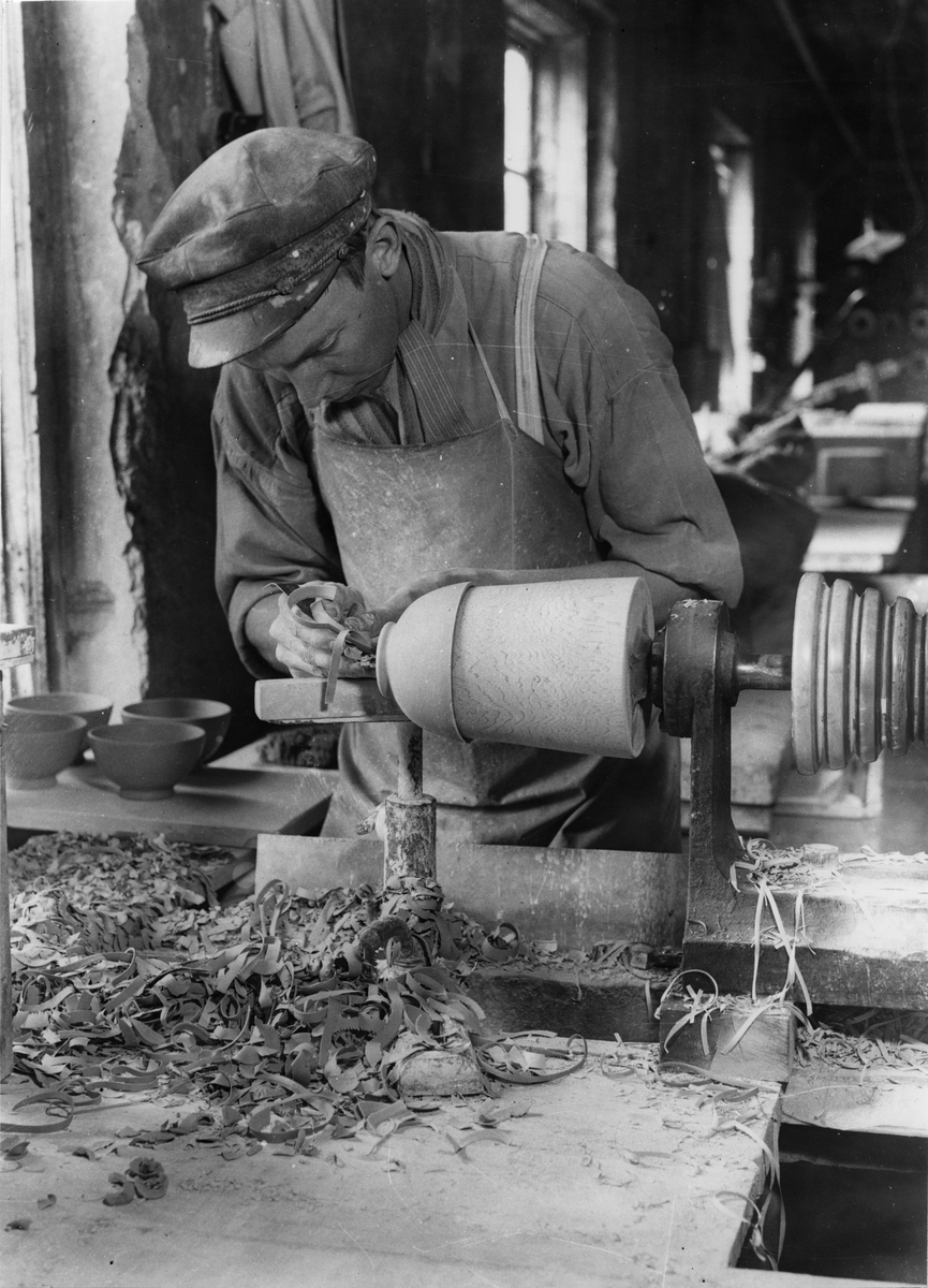 Gustavsbergs Porslinsfabrik. Svarvning av kärl.