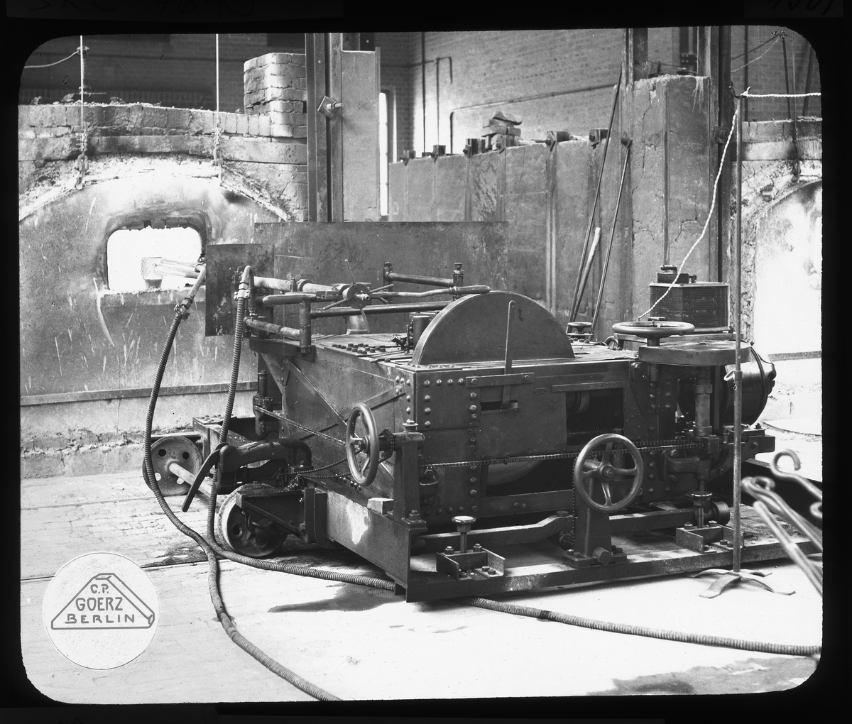 Skioptikonbild från institutionen för fotografi vid Kungliga Tekniska Högskolan. Använd av professor Helmer Bäckström som undervisningsmaterial. Bäckström var Sveriges förste professor i fotografi vid Kungliga Tekniska Högskolan 1948-1958. Optische Anstalt C. P. Goerz, Berlin.