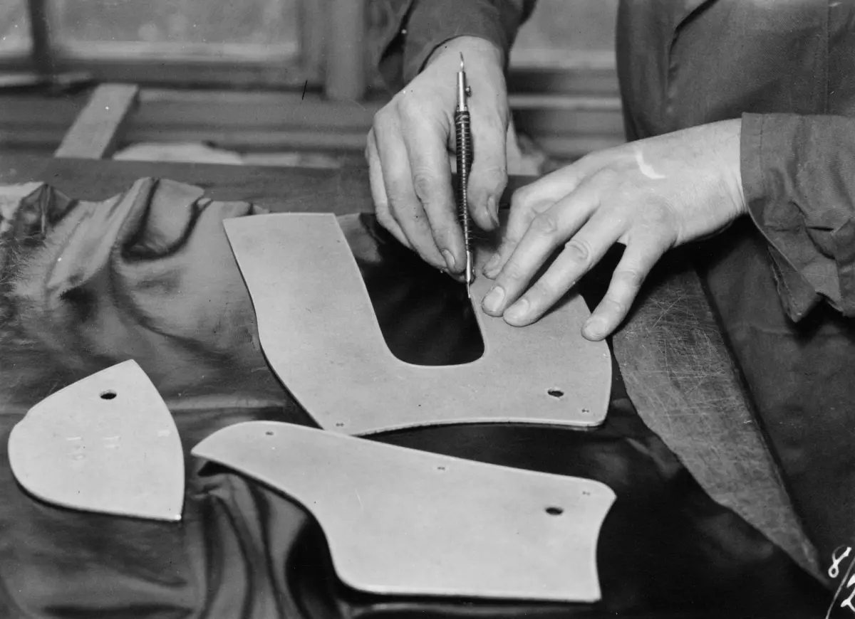 Svenska Skoindustri AB i Örebro. Besätsen skäres ut ur de bästa delarna av skinnet.