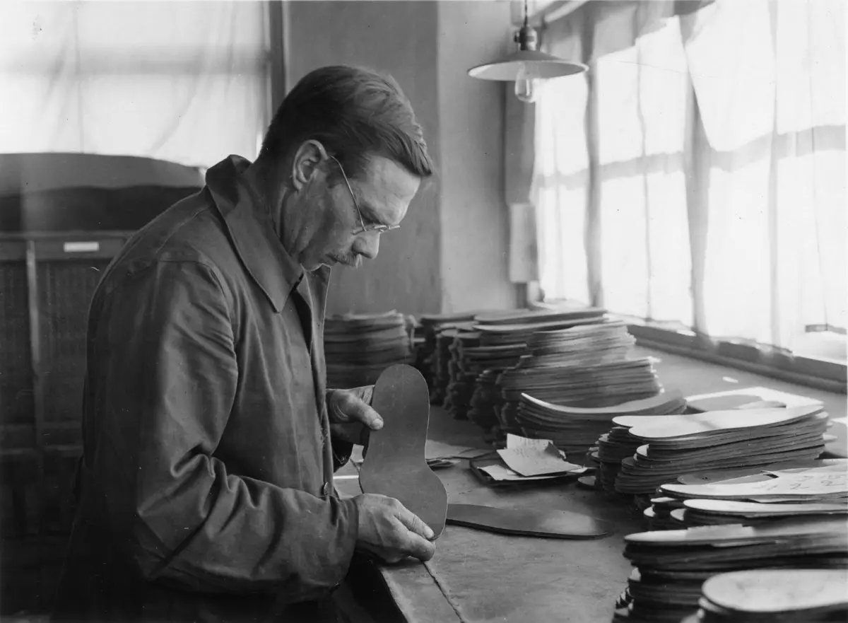 Svenska Skoindustri AB i Örebro. Första kontrollen. Bottenmaterialet synas noga.