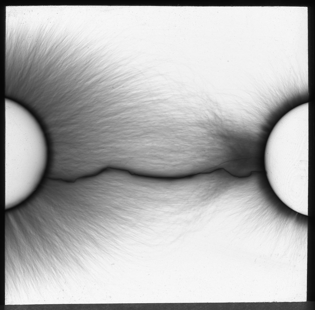 Skioptikonbild från institutionen för fotografi vid Kungliga Tekniska Högskolan. Använd av professor Helmer Bäckström som undervisningsmaterial. Bäckström var Sveriges förste professor i fotografi vid Kungliga Tekniska Högskolan 1948-1958. Bilden visar (möjligen) elektriska spänningsfält.