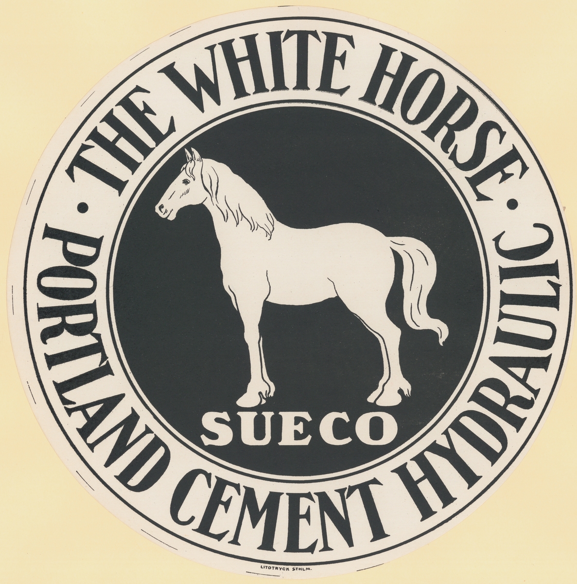 Fabriksmärke för cementpåsar. The White Horse. Portland Cement Hydraulic.