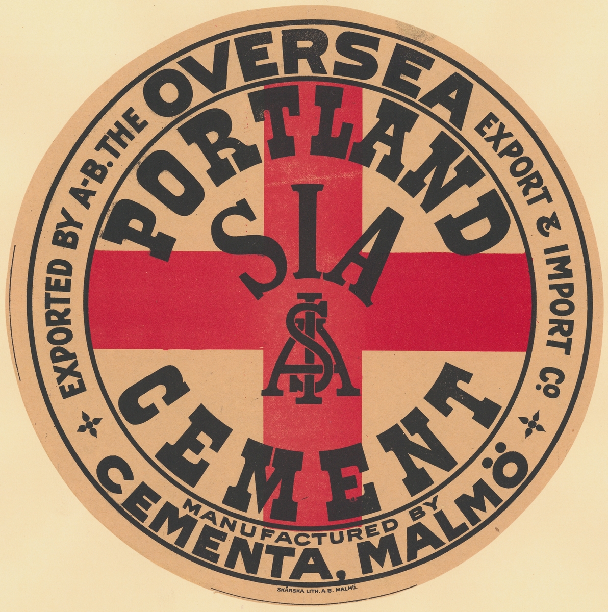 Fabriksmärke för cementpåsar. Cementa, Malmö. Portland Cement.