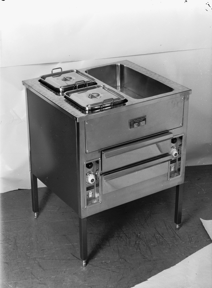 Kommod med vattenbad för tre kantiner samt två lådor.