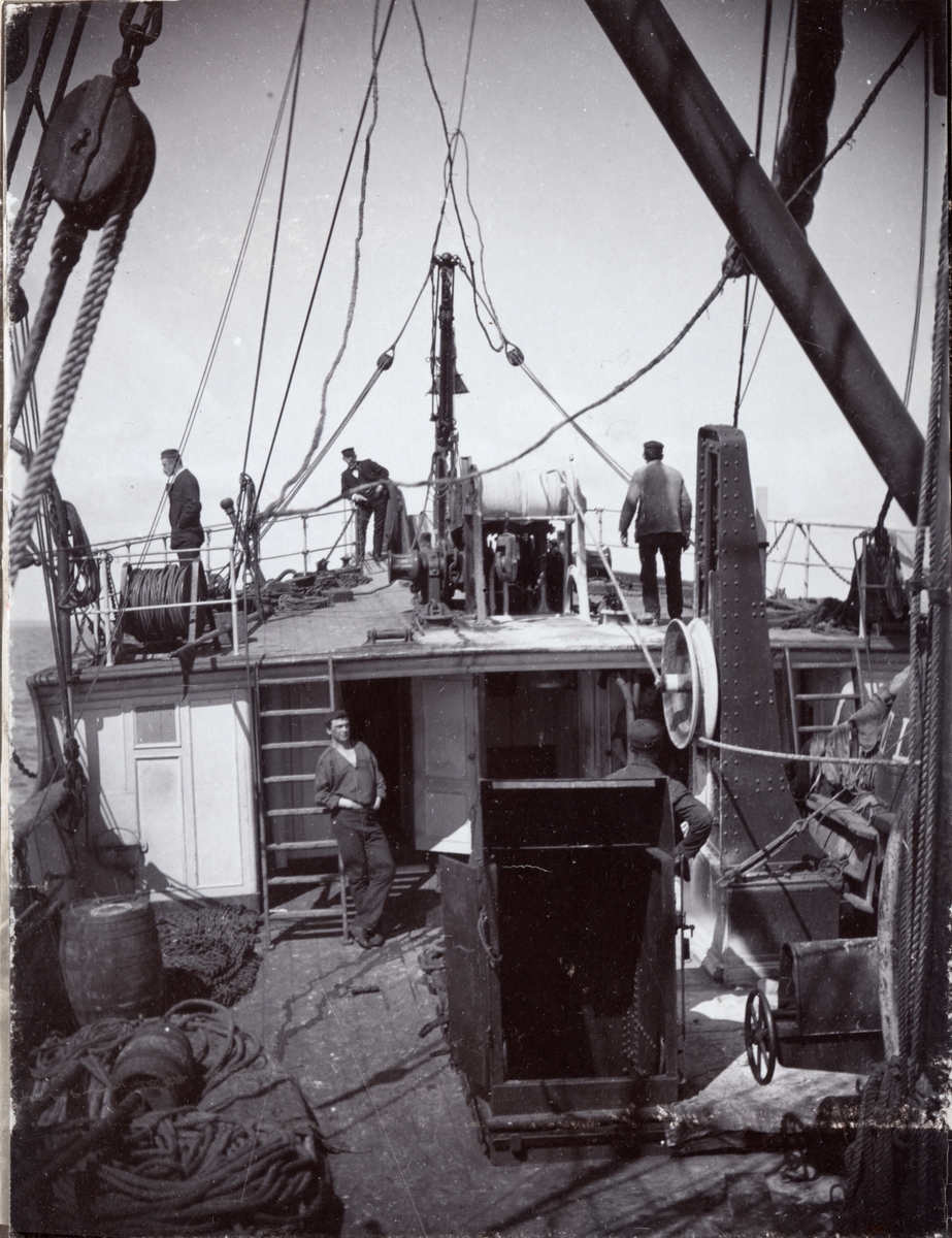 Sjökabel utlägges. Ur album: Kabelexpedition Gotland - Dalarö 1898.