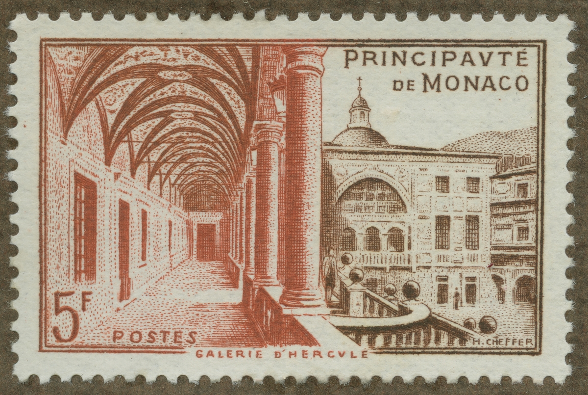 Frimärke från Monaco, 1952. Motiv av "Herculesgalleriet".