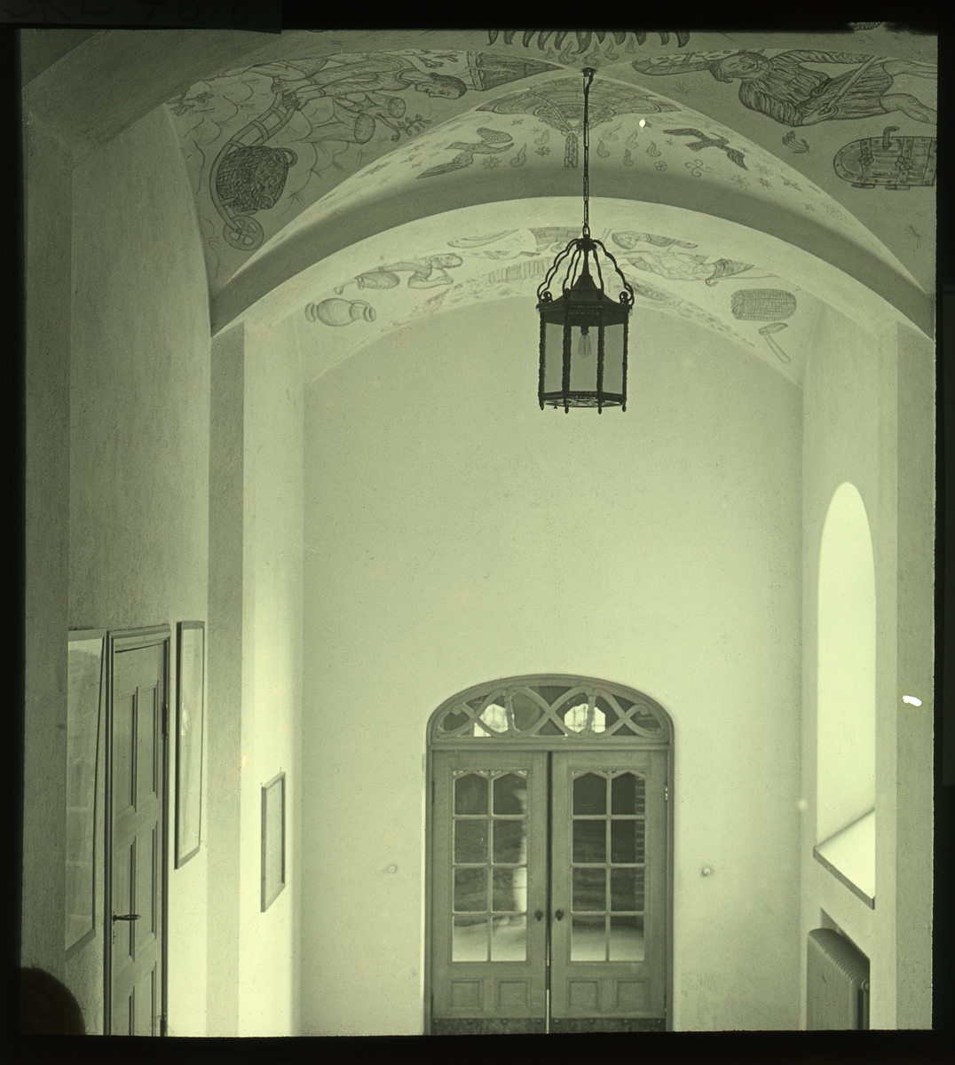 Skioptikonbild från institutionen för fotografi vid Kungliga Tekniska Högskolan. Använd av professor Helmer Bäckström som undervisningsmaterial. Bäckström var Sveriges förste professor i fotografi vid Kungliga Tekniska Högskolan 1948-1958. Trapphus. På bilden står skrivet: Naphtolgrün (Naftolgrönt) För mer info: Se Fotografisk Handbok av Helmer Bäckström. Natur och Kultur. Andra omarbetade upplagan 1958-59. Kap 40 Färgfiltertillverkning. (sid 351 och följande).