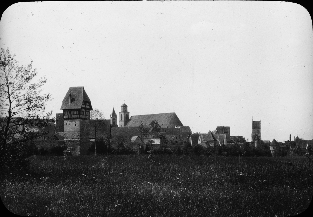 Skioptikonbild med motiv av vy över Dinkelsbülh.