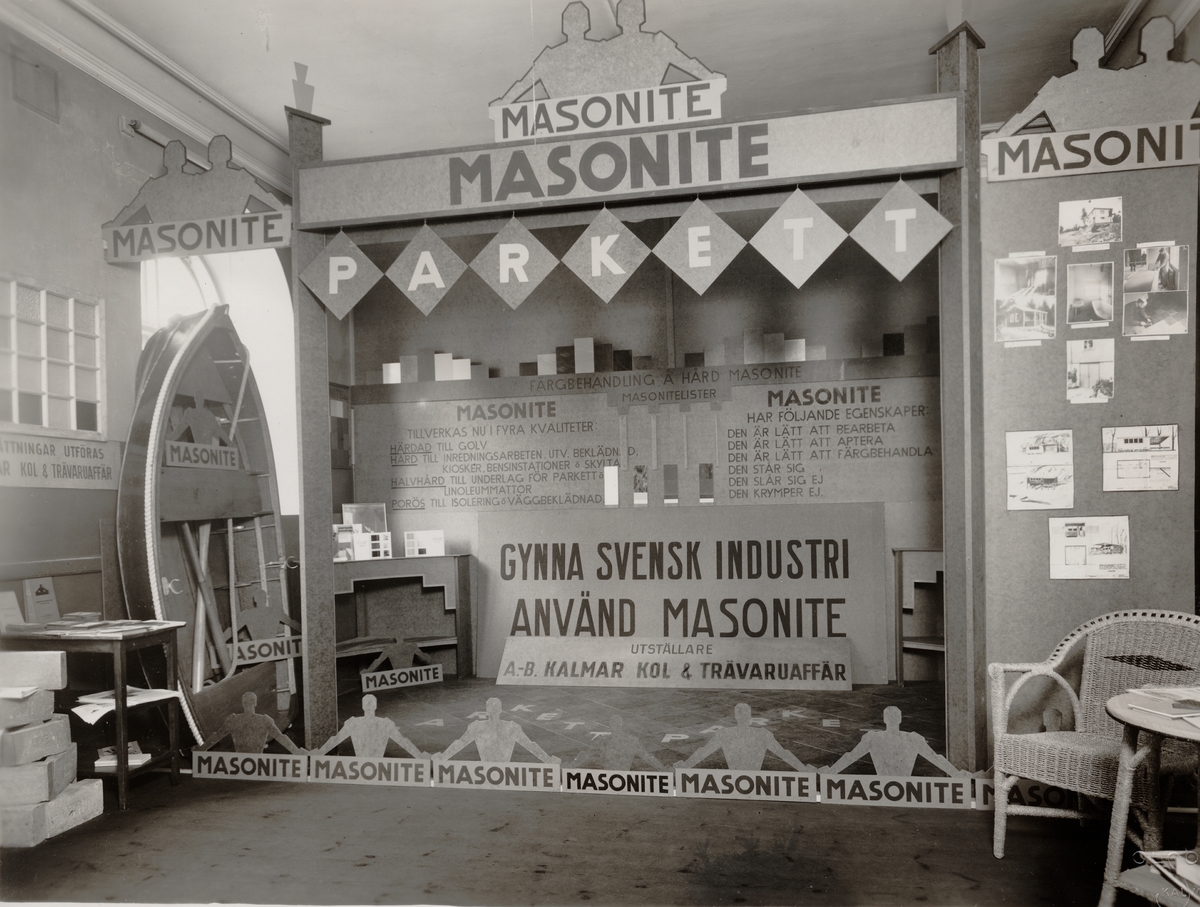 Masonite. AB Kalmar Kol & Trävaruhandels monter på Bygge och Bo- utställningen i Kalmar 1933.