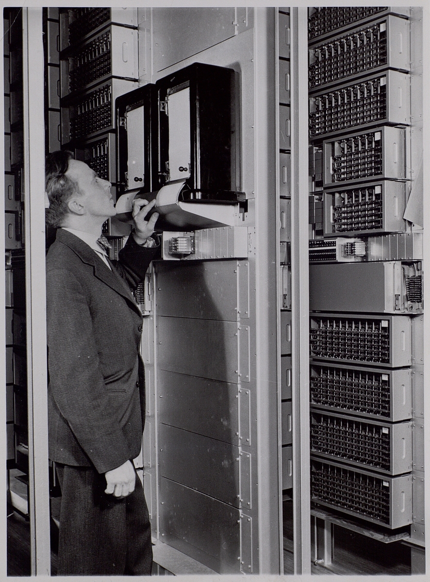 Malmö telefonstation (Slottsstaden Centralografer) 1950-02-24. Avdelningens direktör Rolf Elfors.