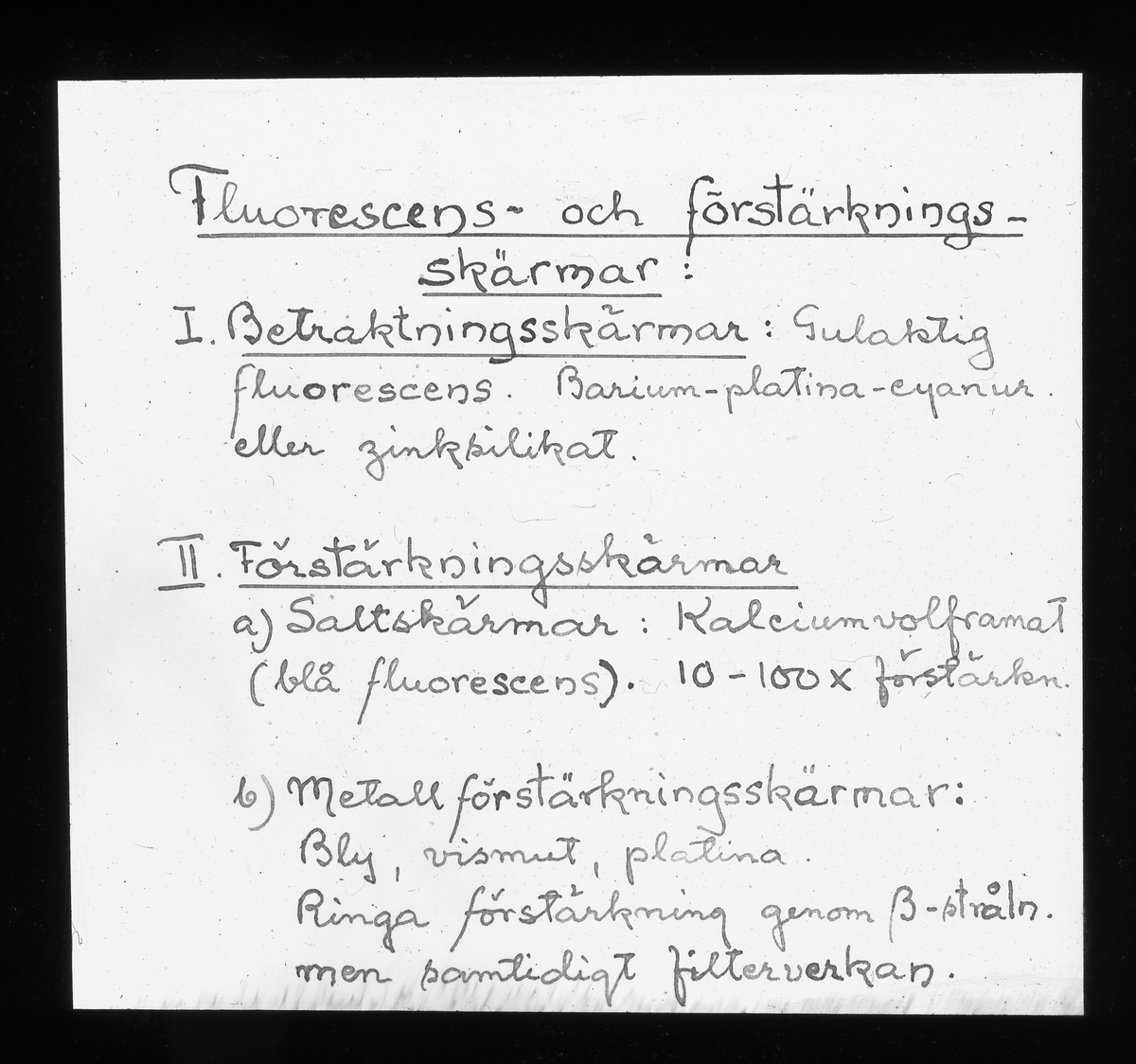 Beskrivning av fluorescens- och förstärkningsskärmar.