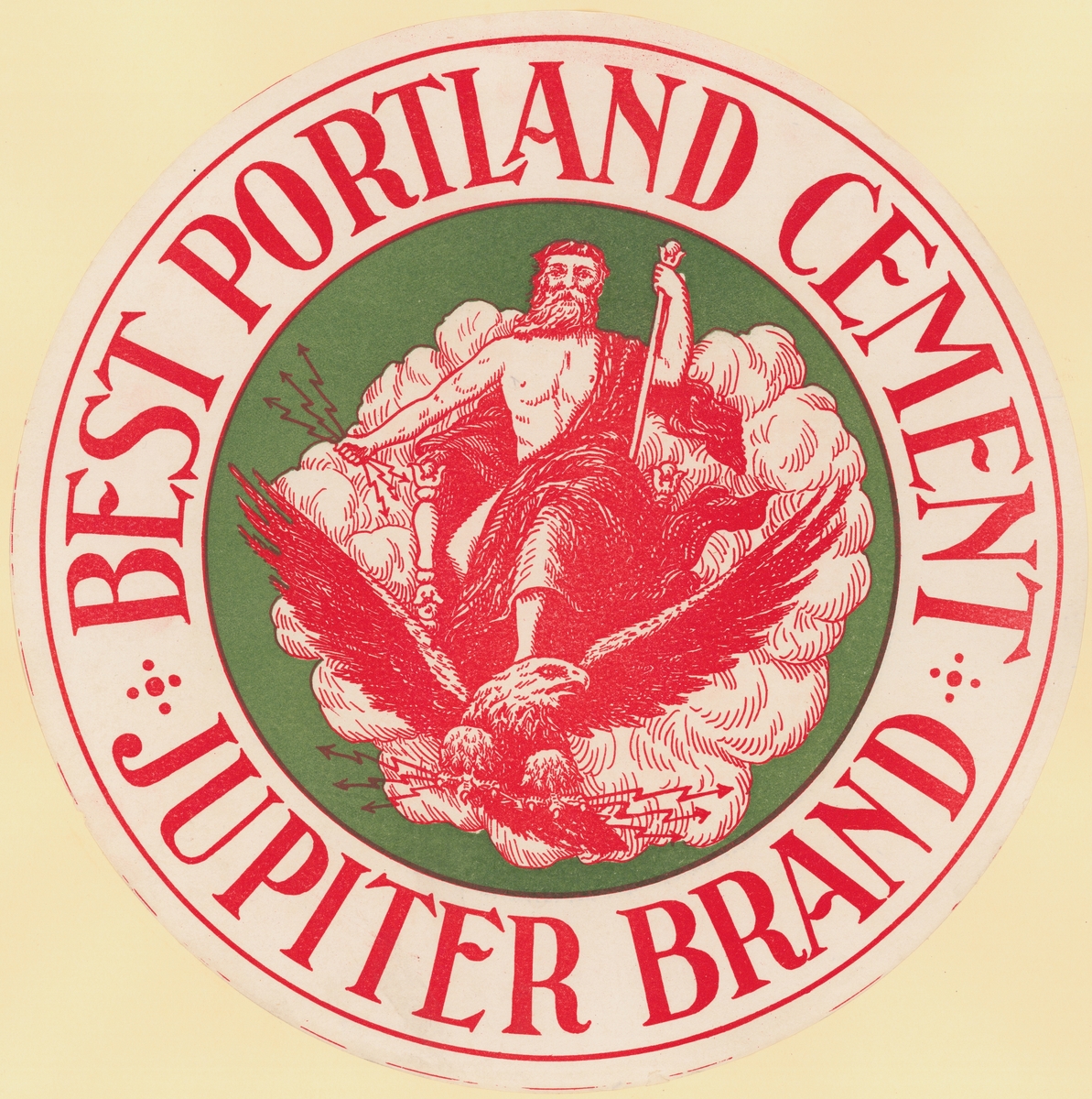 Fabriksmärke för cementpåsar. Jupiter Brand. Best Portland Cement.