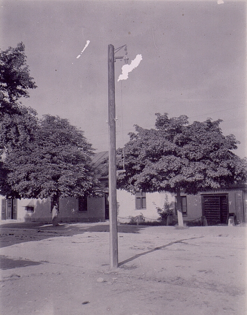 Kandelaber i Visby med telefonledning i samma stolpe. Utförd år 1905 på stadens bekostnad.