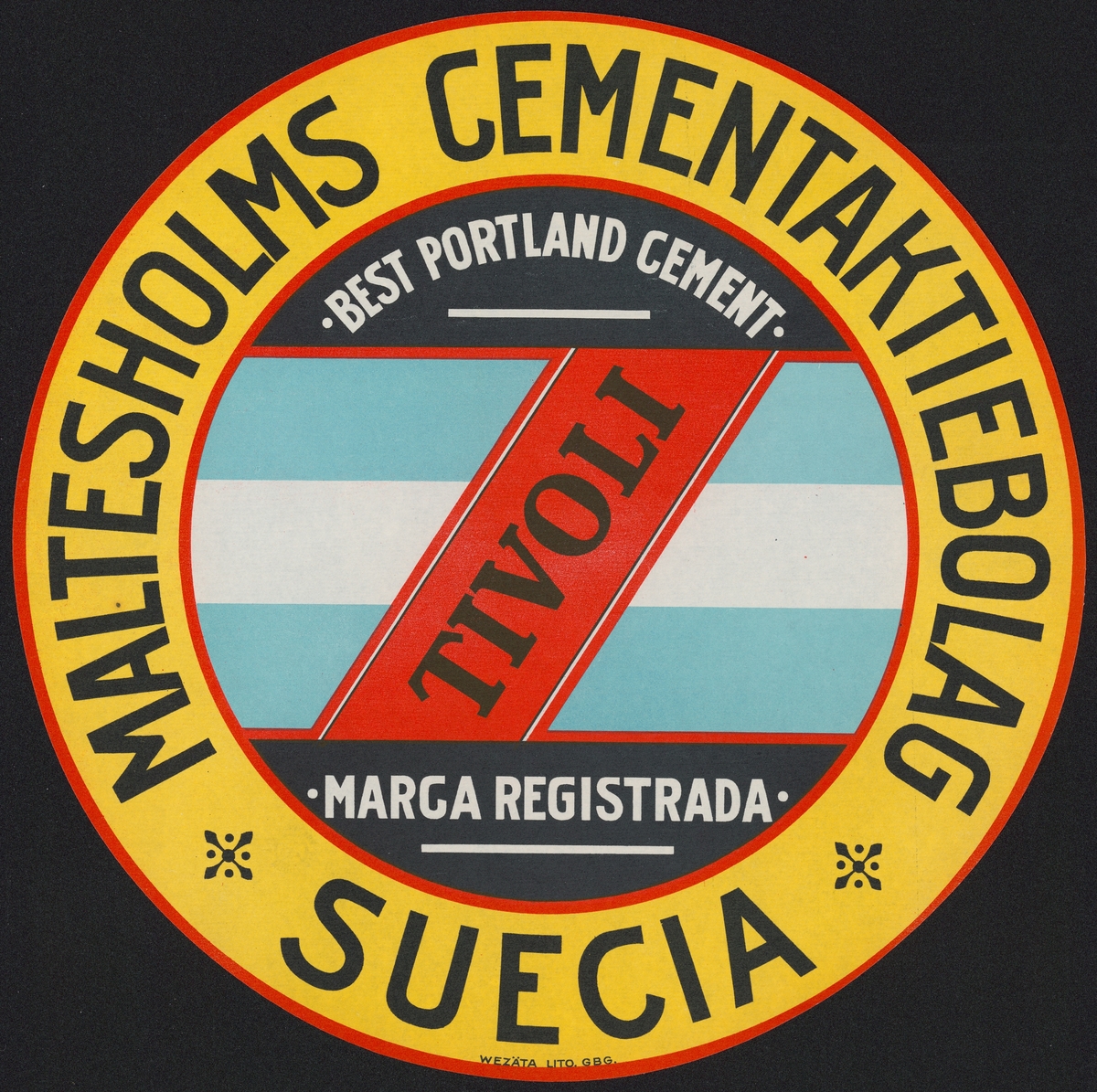 Fabriksmärke för cementpåsar. Maltesholms Cementaktiebolag. Portland Cement.