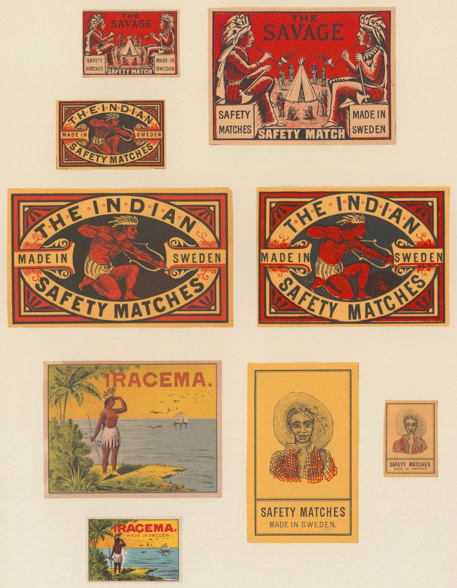 Etiketter för tändsticksaskar, från Svenskt Industri- och Handelsmuseum.