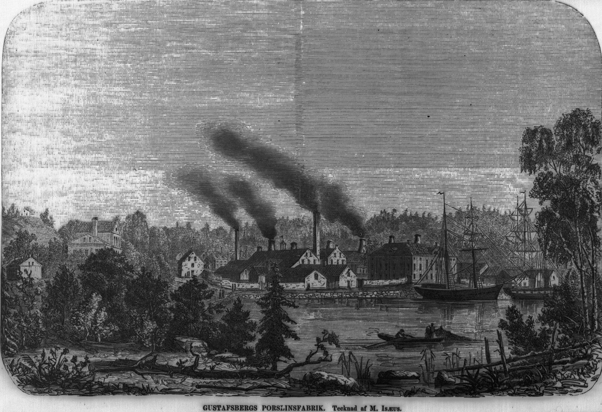 Gustavsbergs Porslinsfabrik. Tecknad av Isaeus, M. Ur Ny Ill. Tidning 1870-talet.