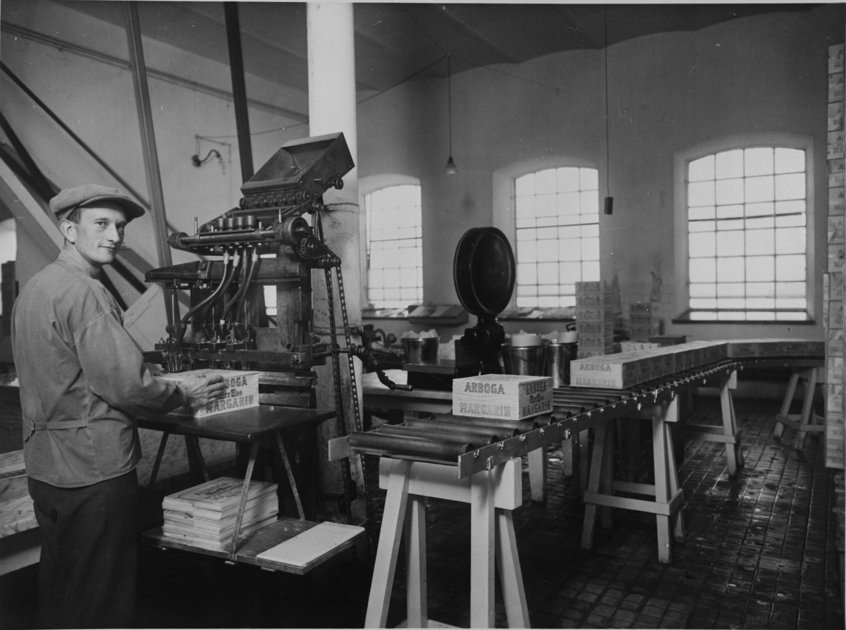 Montering och transport av packlådor vid Arboga Margarinfabrik AB.