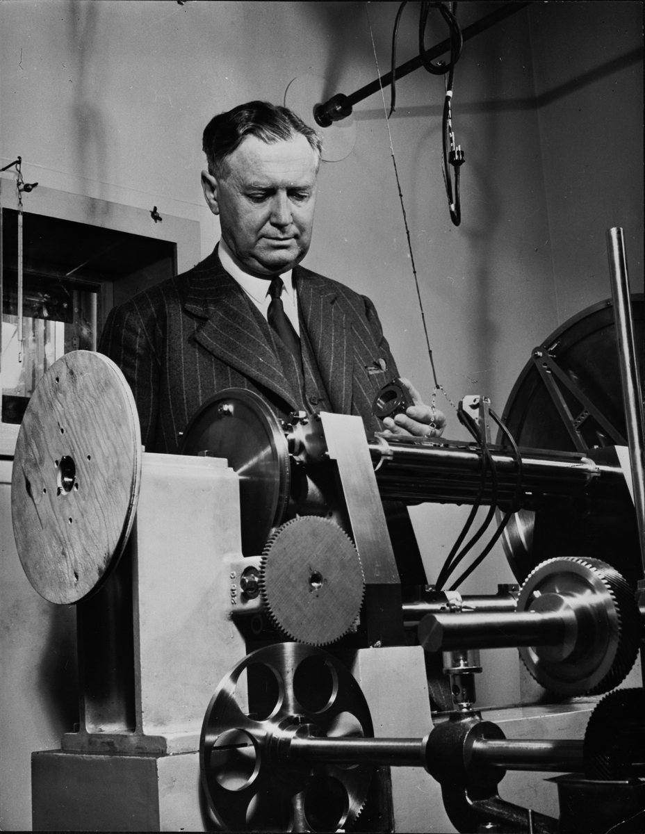 Professor Manne Siegbahn vid en gittermaskin i början av 1950-talet.