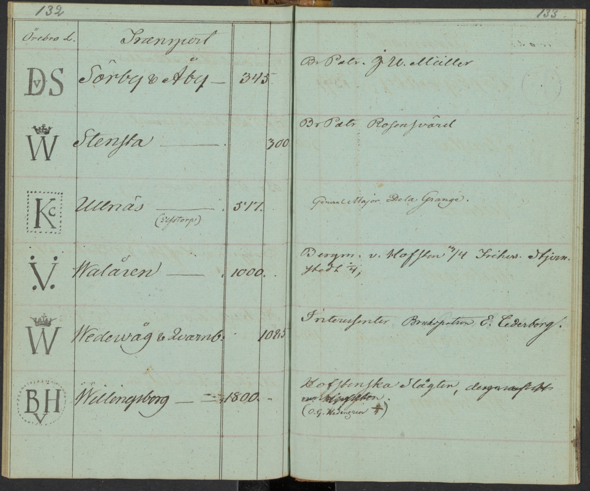 Svenska Stångjärns- och manufakturverkens smidesrätt, stämplar och ägare år 1832.