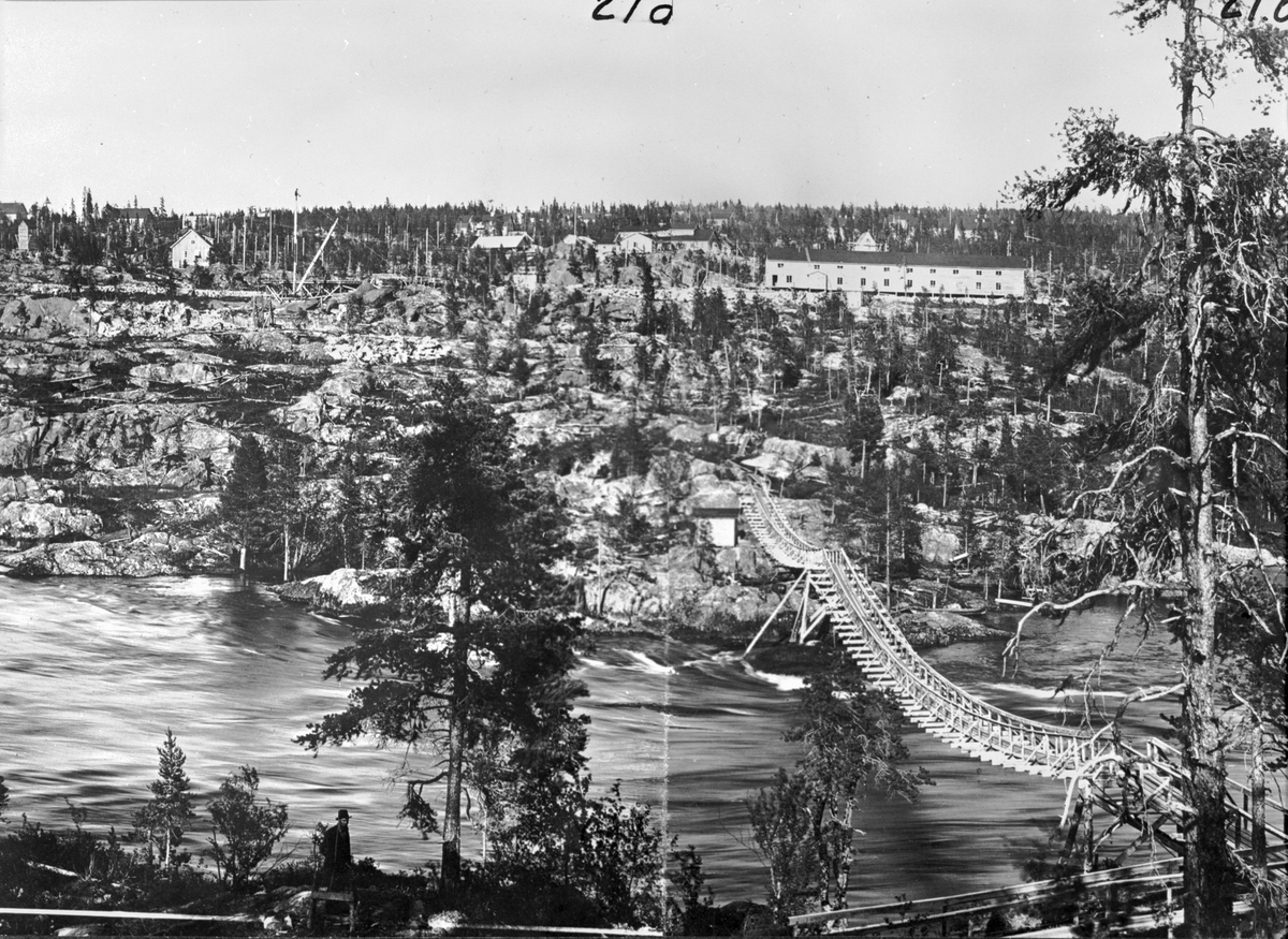 Harsprångets kraftstation. Byggnadsplatsen, sedd från östra stranden.