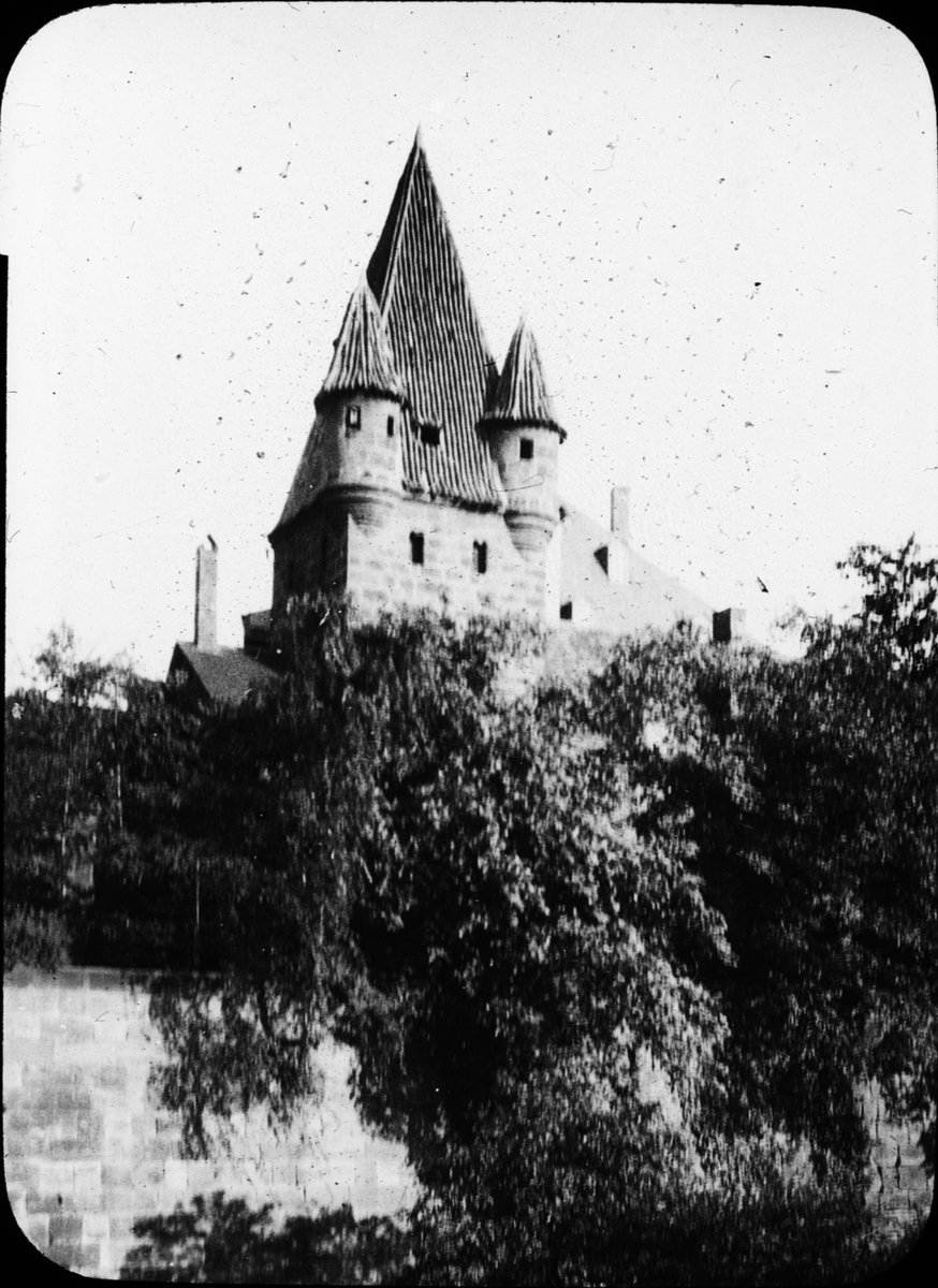 Skioptikonbild med motiv av torn i stadsmuren, Nürnberg.