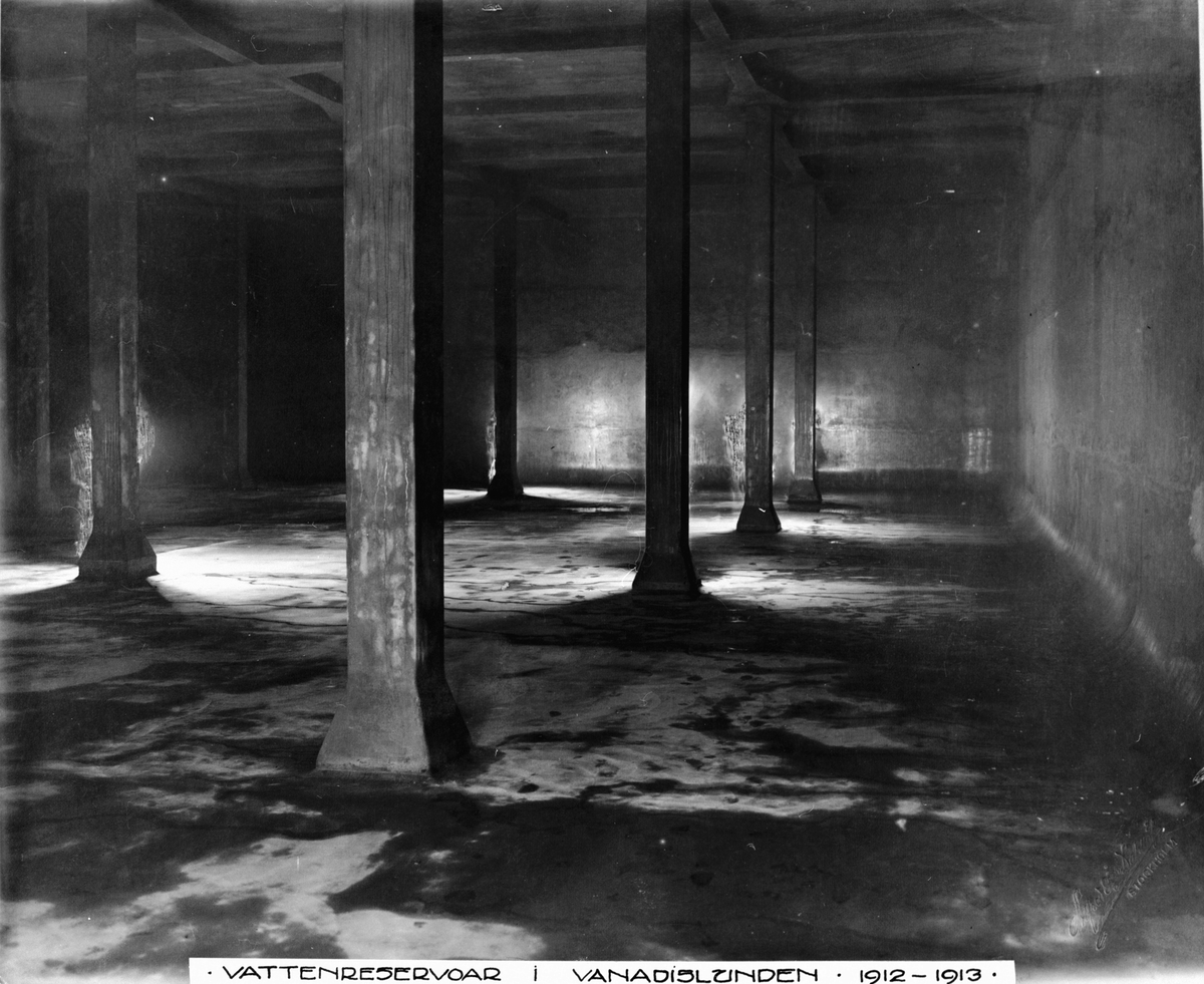 Byggherre: Byggnadsaktiebolaget Contractor, Stockholm. Vattenreservoar i Vanadislunden. Interiör.