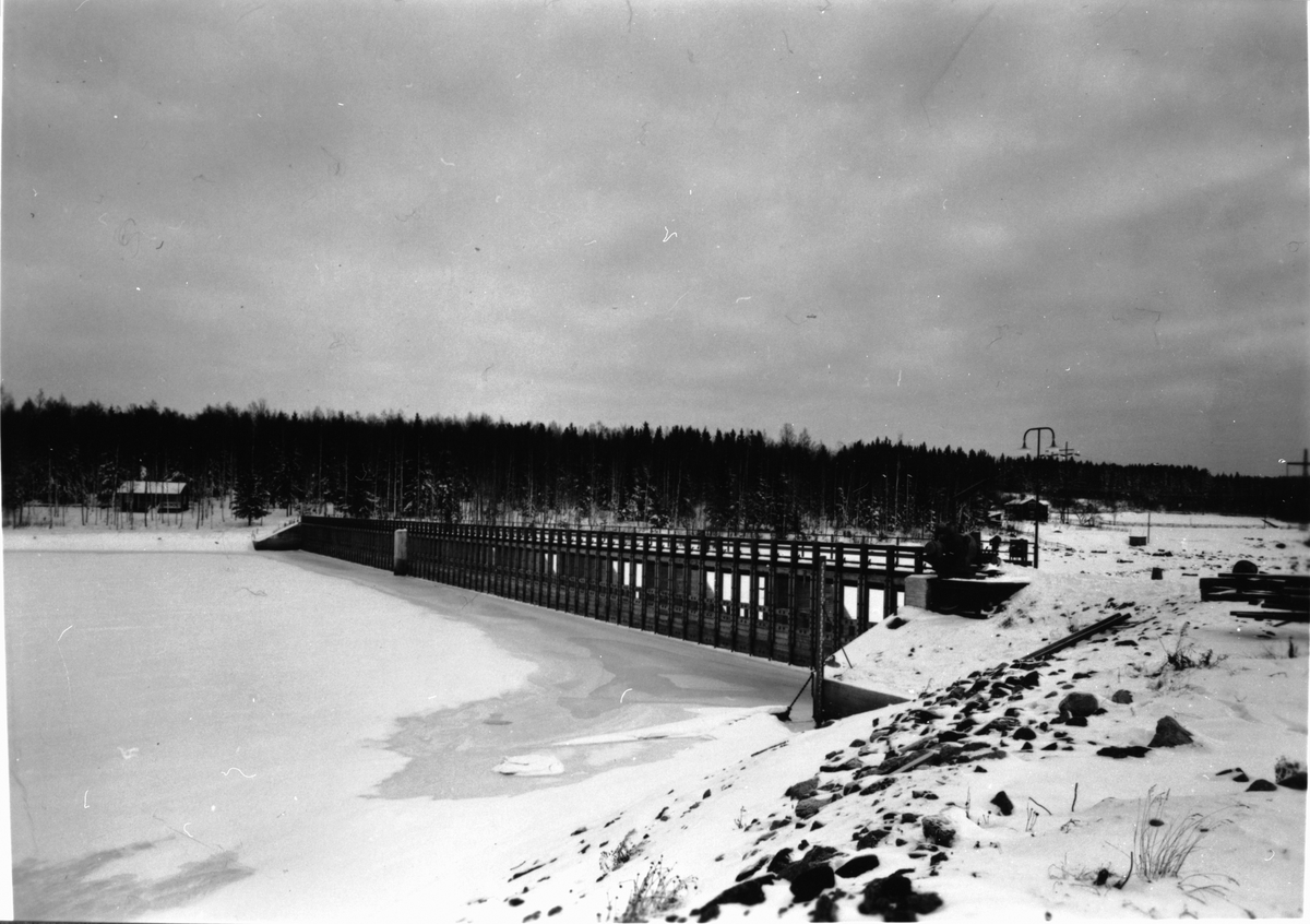 Byggherre: Byggnadsaktiebolaget Contractor, Stockholm. Kraftverk. Klumpforsdammen, Uppströmsvy.