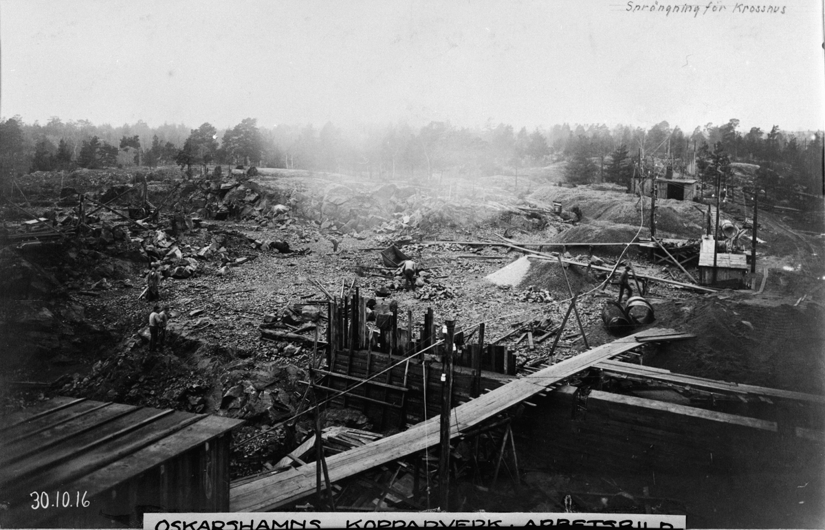 Byggherre: Byggnadsaktiebolaget Contractor, Stockholm. Arbetsbild för sprängning för Krosshus.
