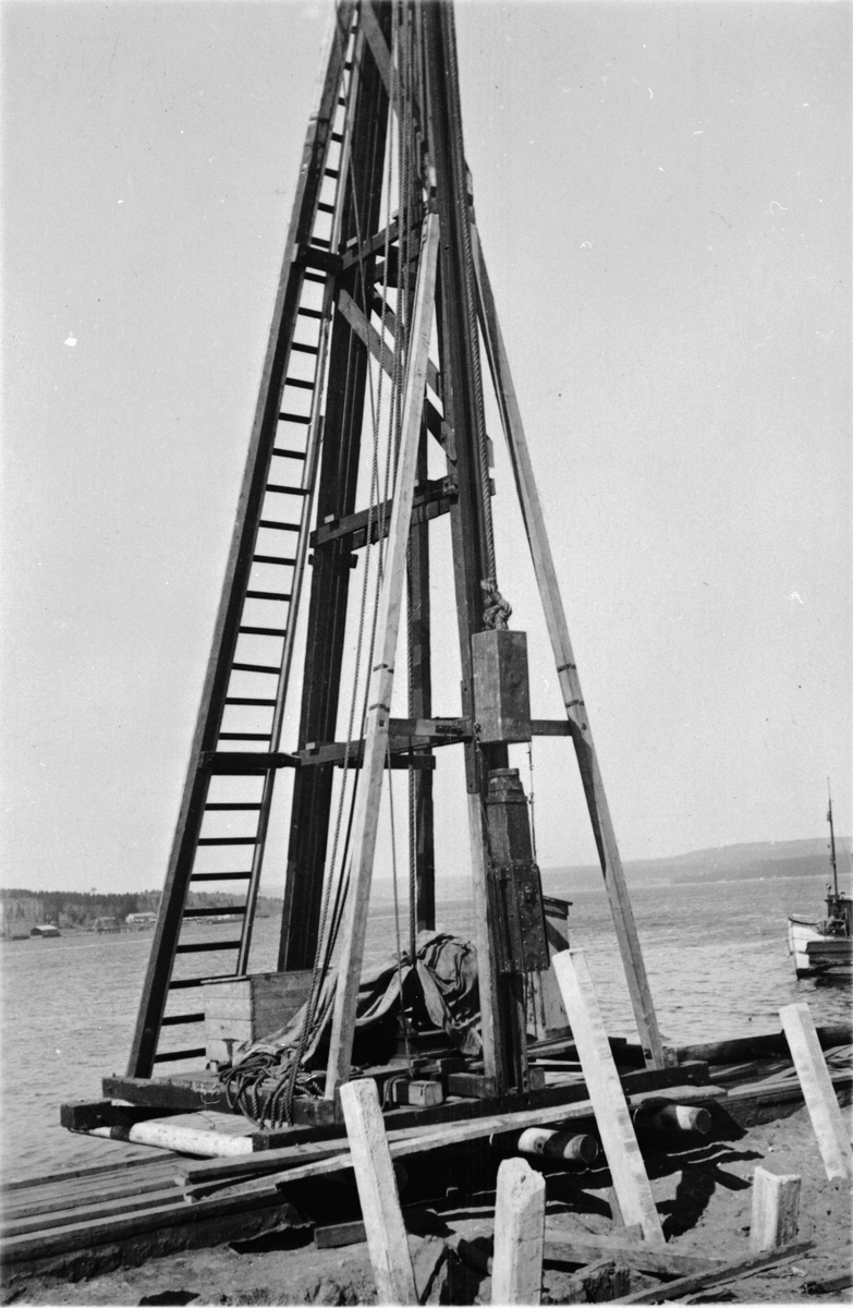 Titel: Byggherre: Byggnadsaktiebolaget Contractor, Stockholm. Pålar för att bygga Skeppsbrokajen.