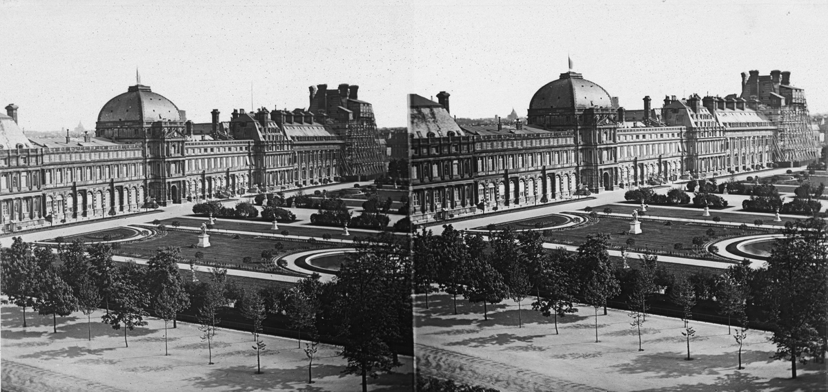 Stereobild. Jordin et ChÆteau des builerius. Utställningen i Paris.