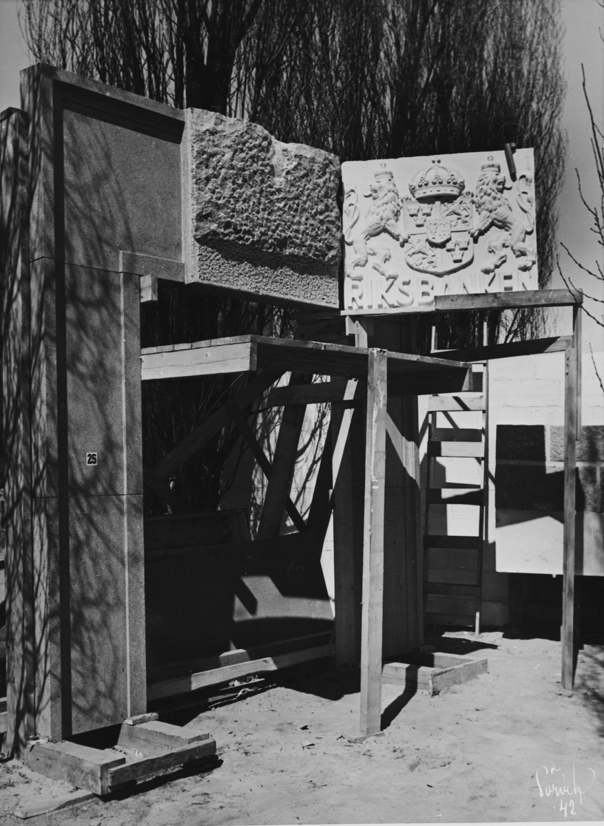 Bröderna Gustafssons stenhuggerier AB, Stockholm. Svenk Naturstensutställning. Riksbankens vapen.