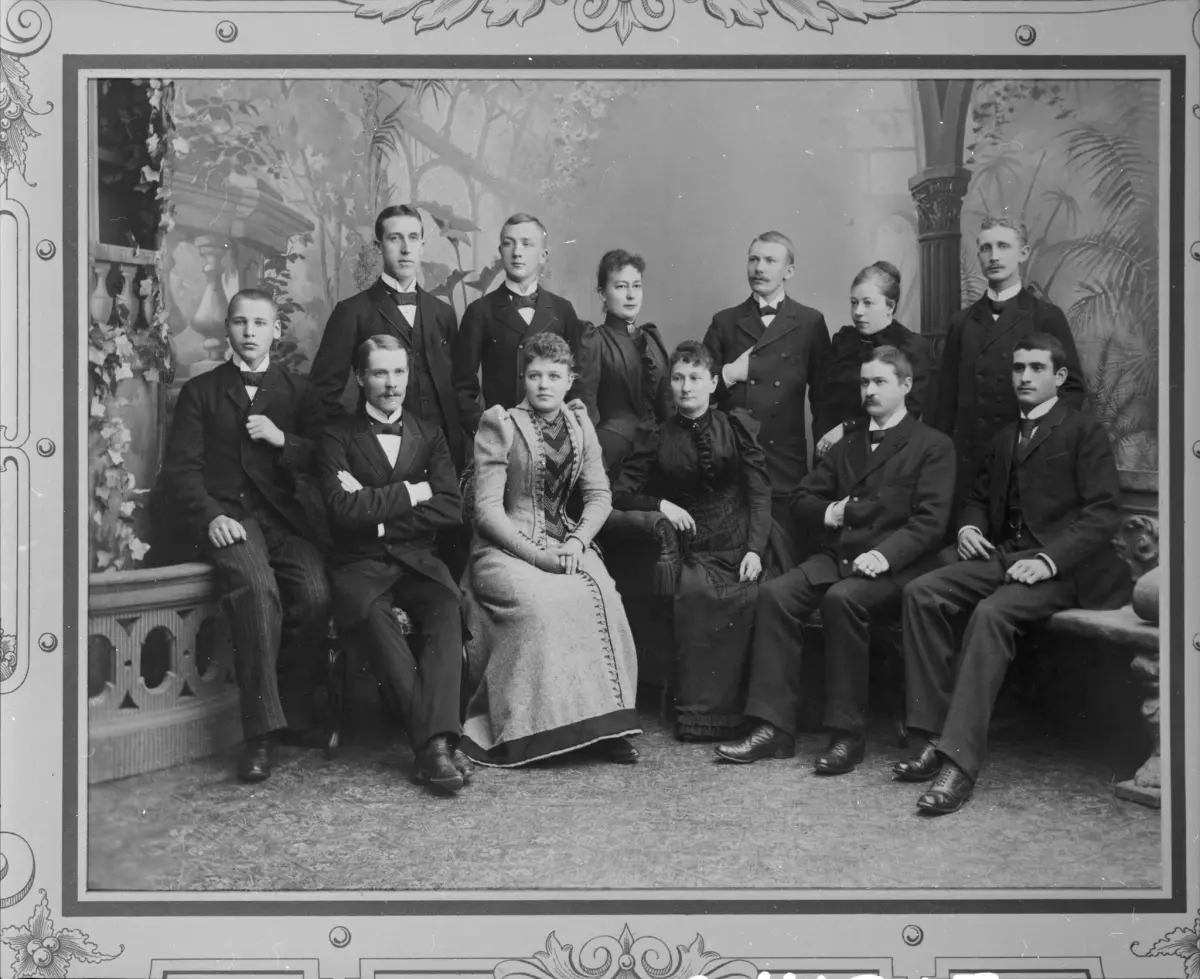 Stråhattfabriken."Till minne af 25-årigt Affärsjubileum 1868 1/1 1893". Med gulbokstäver står det "Kongl. Hovleverantör Otto Billberg" på pärmen. Ett gruppfotografi (chefer?).