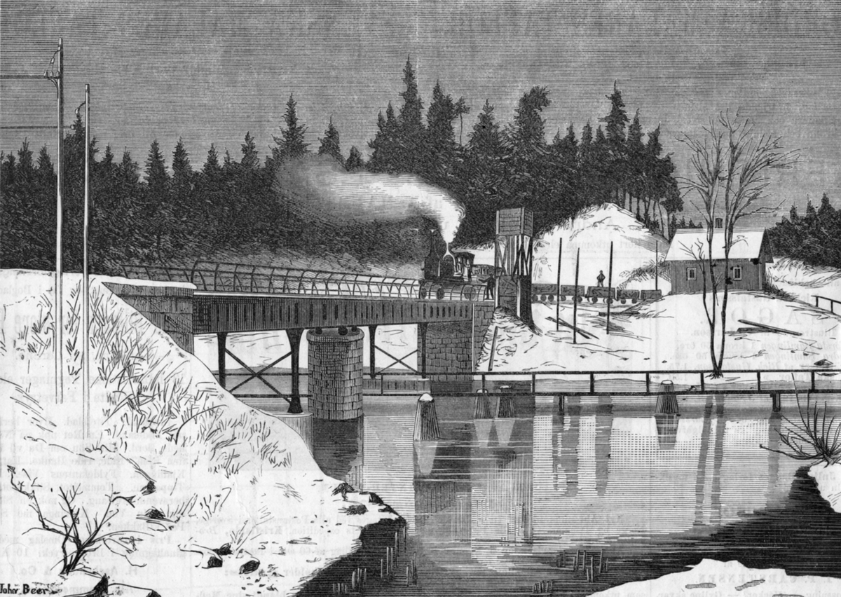 Järnvägsbron vid Stäket vintertid.