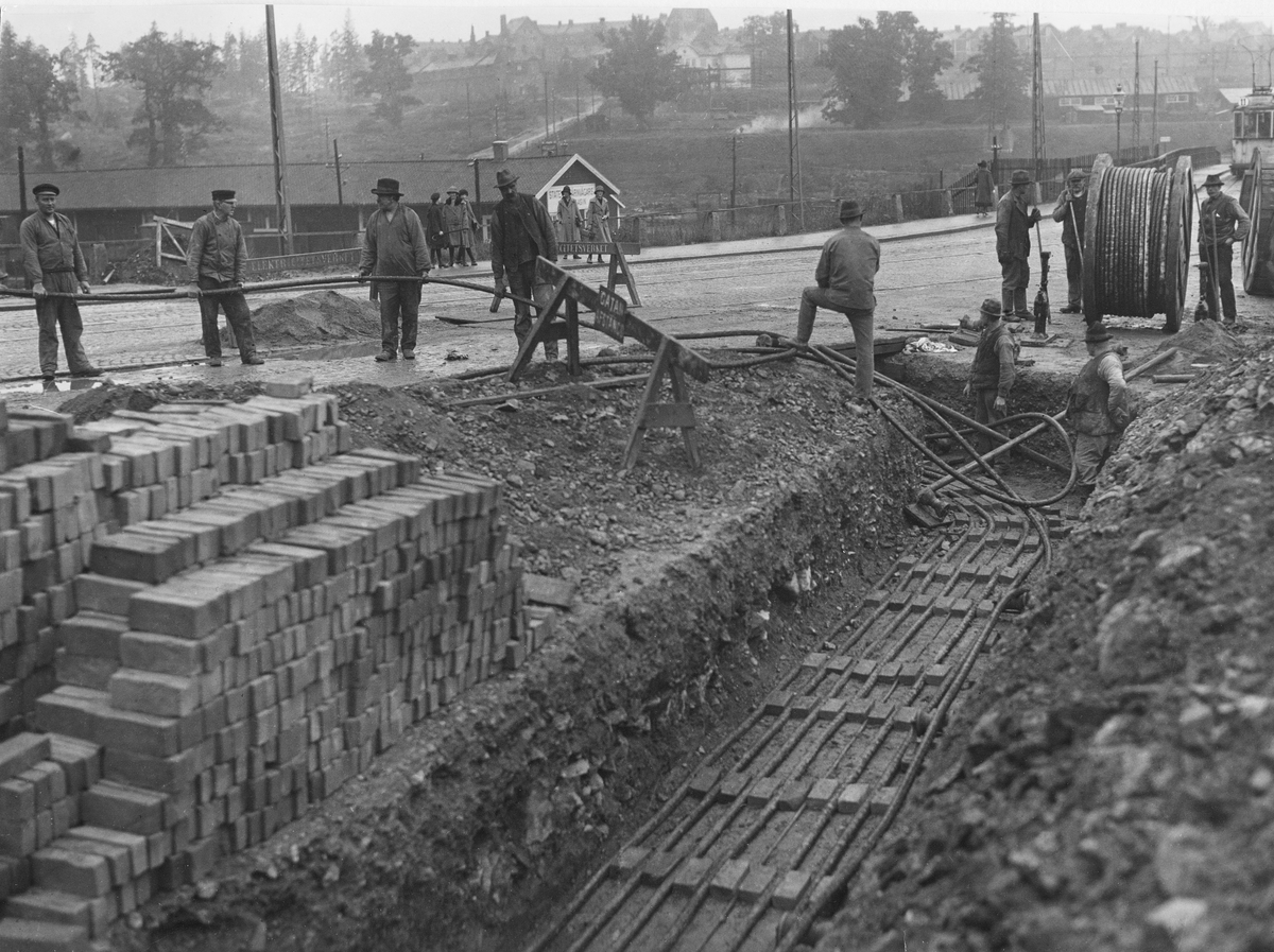 Dragning av 6000 V kablar i Sturevägen vid viadukten.