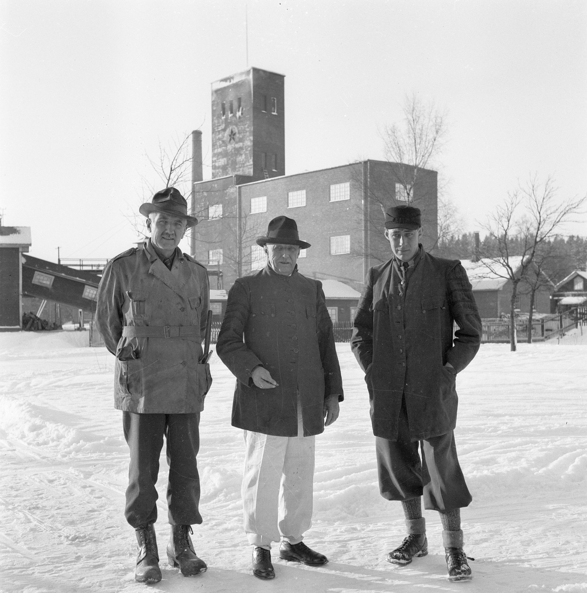 Från vänster: Civilingenjör Sven Torell, direktör Otto Torell, gruvingenjör Müller. Direktör Torell iklädd bergsmansuniform, som användes för besökare i zinkgruvan.