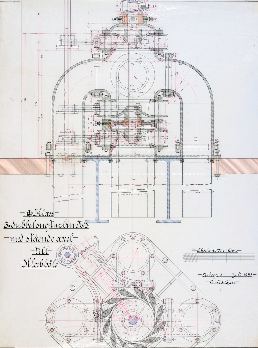 Ritning. Dubbelsugturbin nr 3 med stående axel till Klabböle.