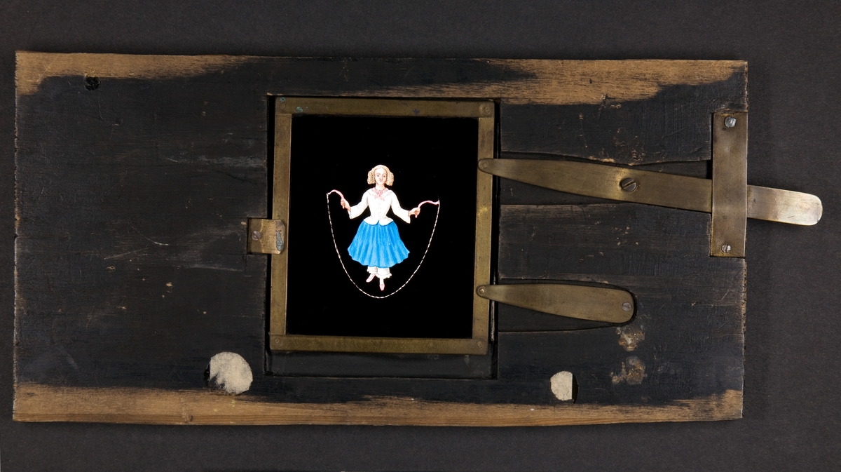 Laterna magica bild målad i färg på glasskiva.