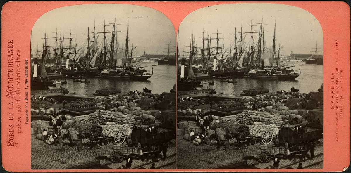 Stereobild med motiv av segelfartyg vid hamnen i Marseille.