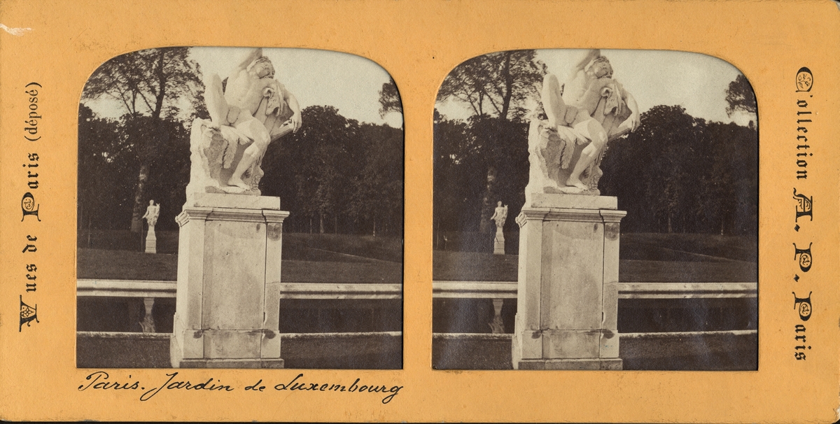 Stereobild av staty/ skulptur i parken Jardin du Luxembourg, Paris.