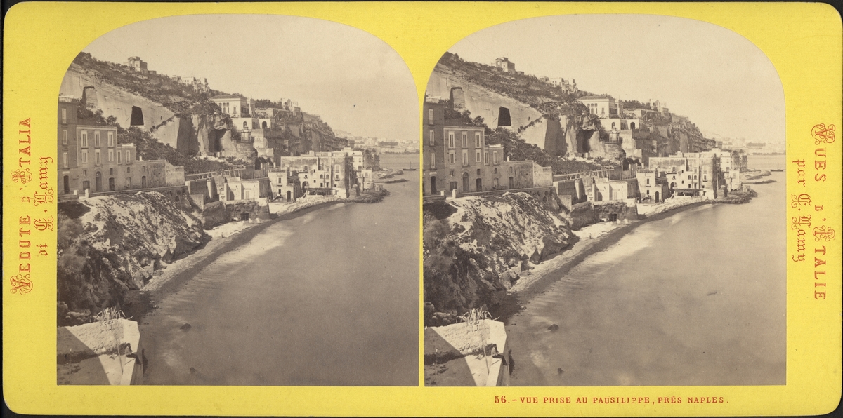 Stereobild, hus vid strandremsa, Neapel.