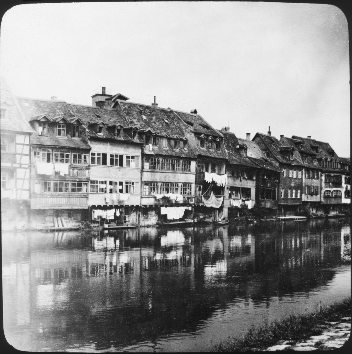 Skioptikonbild med motiv av floden Regnitz i Bamberg.
