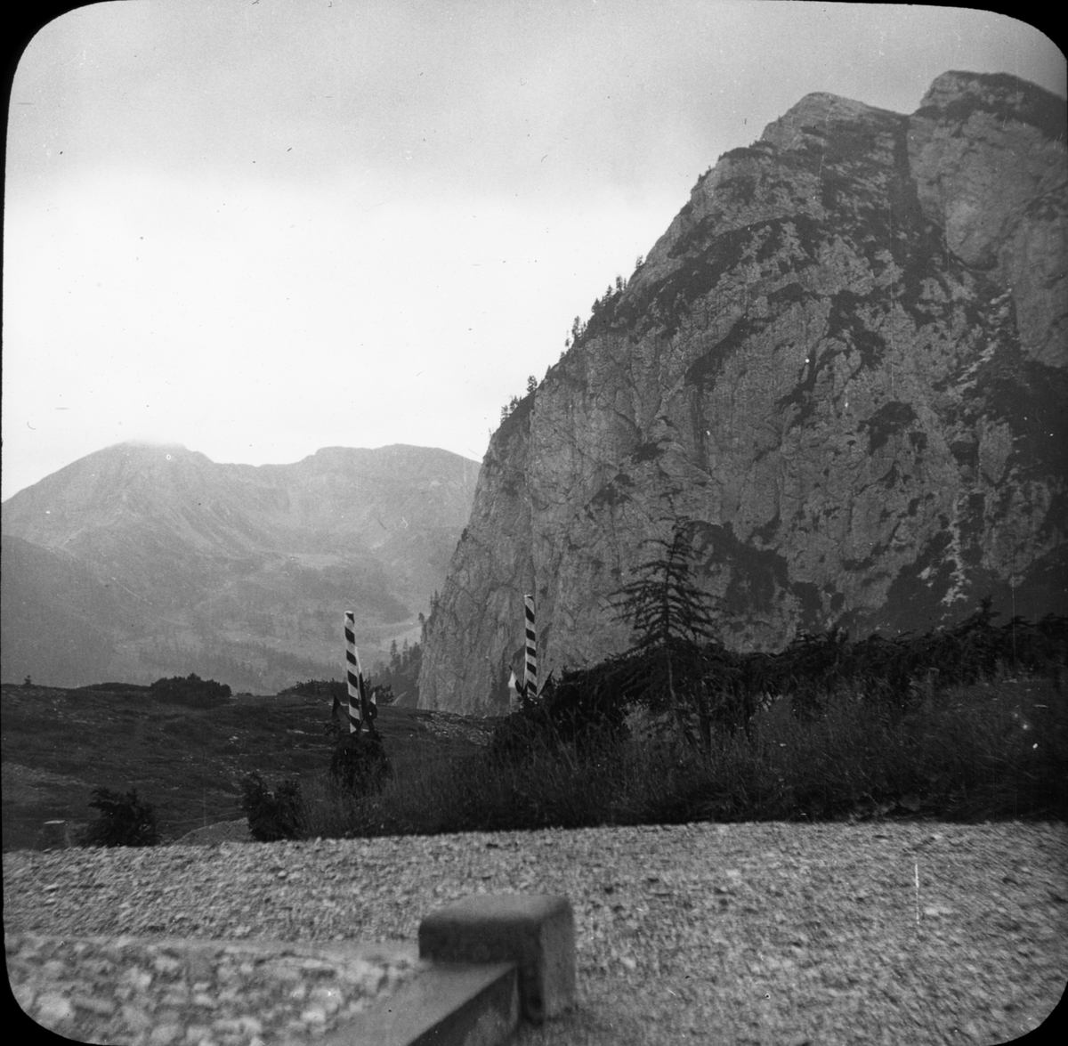 Skioptikonbild med motiv av bergspasset Falzarego Pass mellan Andráz och Cortina d'Ampezzo.