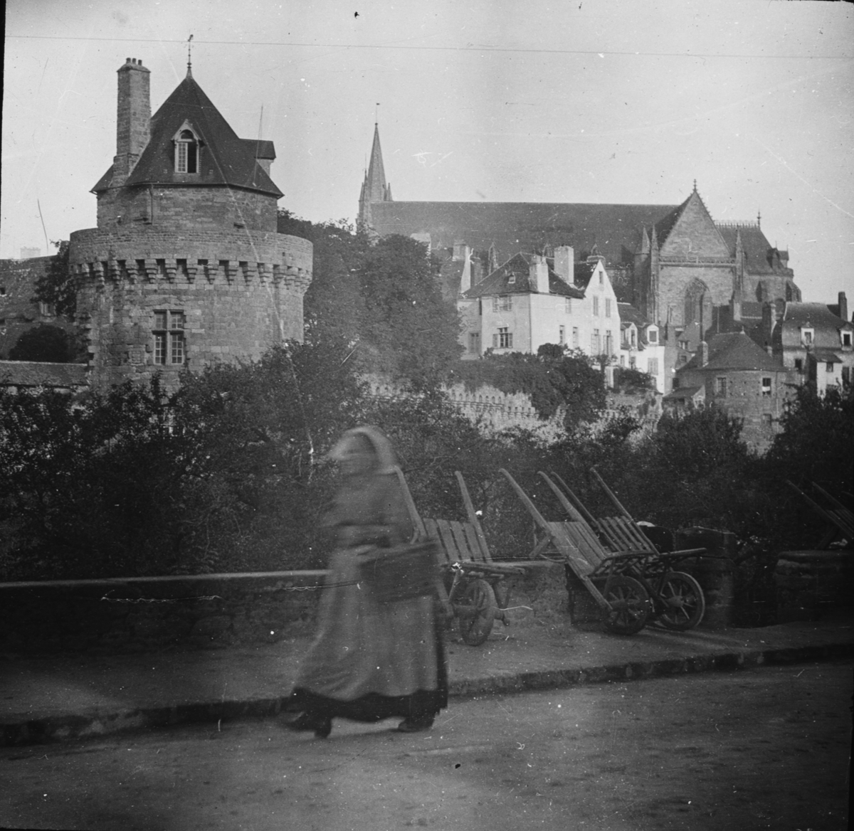 Skioptikonbild med motiv av från Vannes med tornet Tour de Connétable.