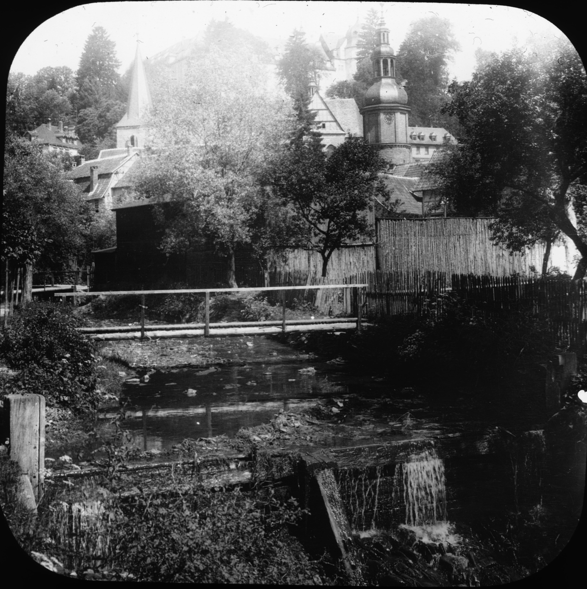 Skioptikonbild med motiv från Stolberg, Harz, med tornet Seigerturm.
