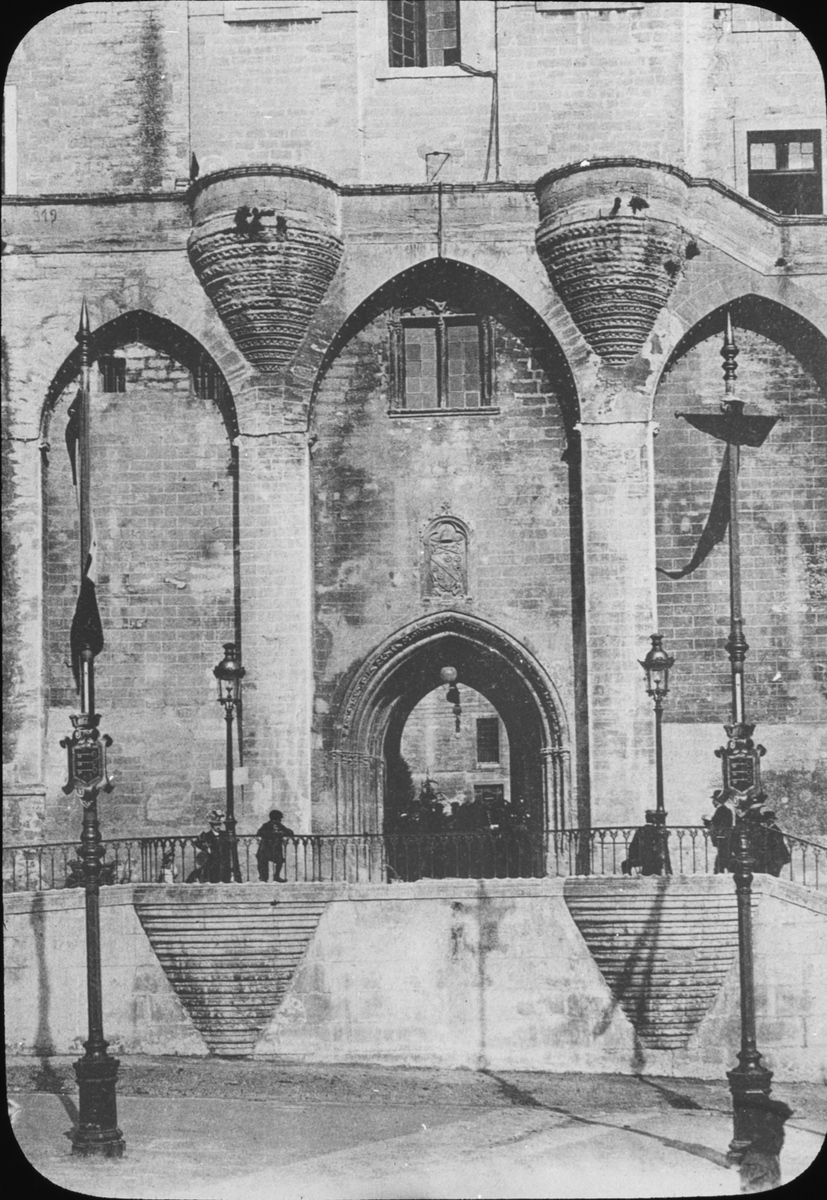 Skioptikonbild med motiv av okänd byggnad i Avignon.
