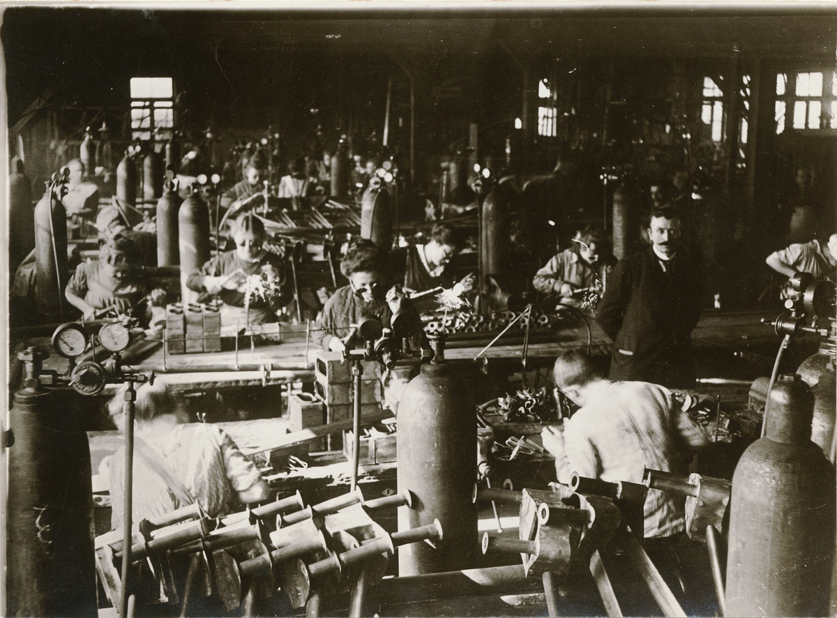 Svetsverkstad i flygplansfabrik under världskriget. Troligen i Tyskland.