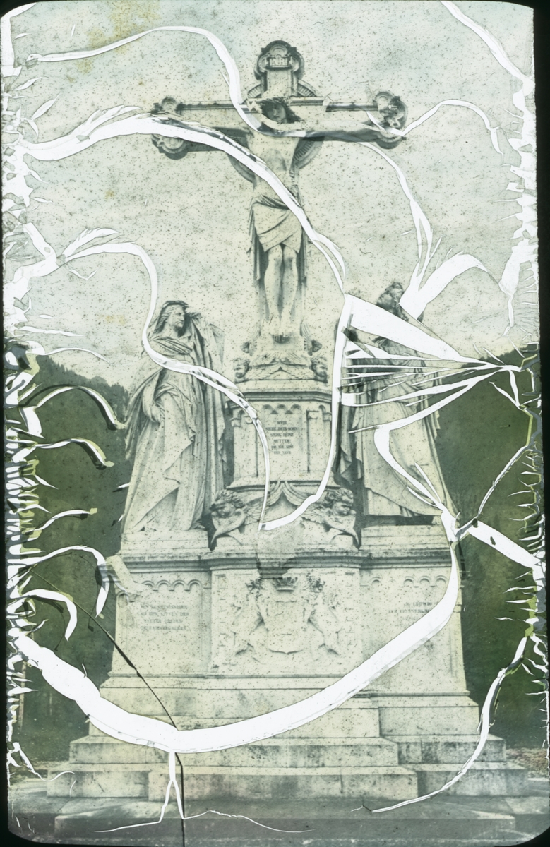 Kolorerad skioptikonbild med motiv av religiöst monument, okänd plats.