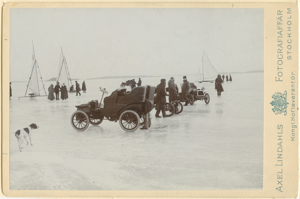 Den första biltävlingen (hastighetstävling) i Sverige avhölls på Mälarens is 1905. Egentligen skulle tävligen ha varit mellan isjakter och bilar men stiltje rådde. Vagnen närmast är en Scania-tonneau tillhörig ingenjör Victor Wallenberg, den första svensk som företog en verklig långfärd, i det att han körde en fransk bil från Frankrike till Sverige 1899. Den vagn som synes längst till höger är en Star och mannen bredvid vagnen är Emil Salmson, ägare till fotografiet.